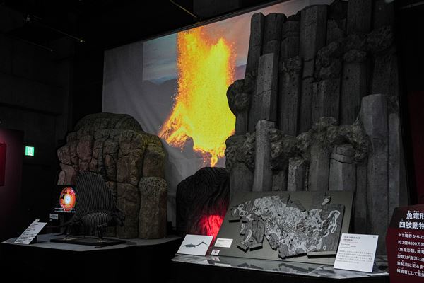 地球史上で最大規模の生物の大量絶滅と言われており、全生物の95%が絶滅したとされる時代。背中の大きな帆が特徴的な『ディメトロドン(レプリカ)』を展示。その背景には、絶滅の主因とされる大規模な火山活動をイメージしたセットが配置されている。