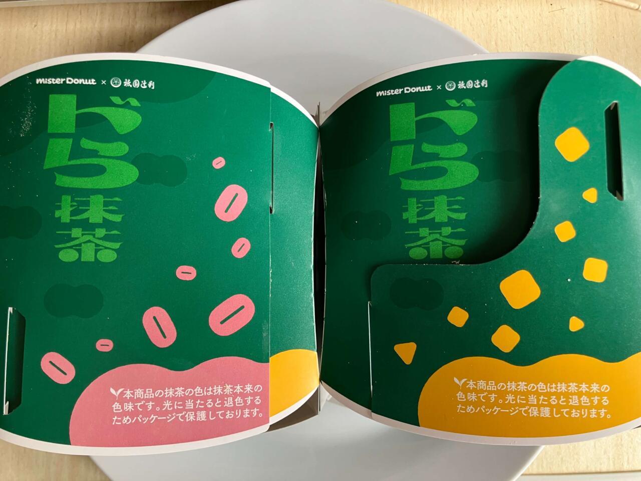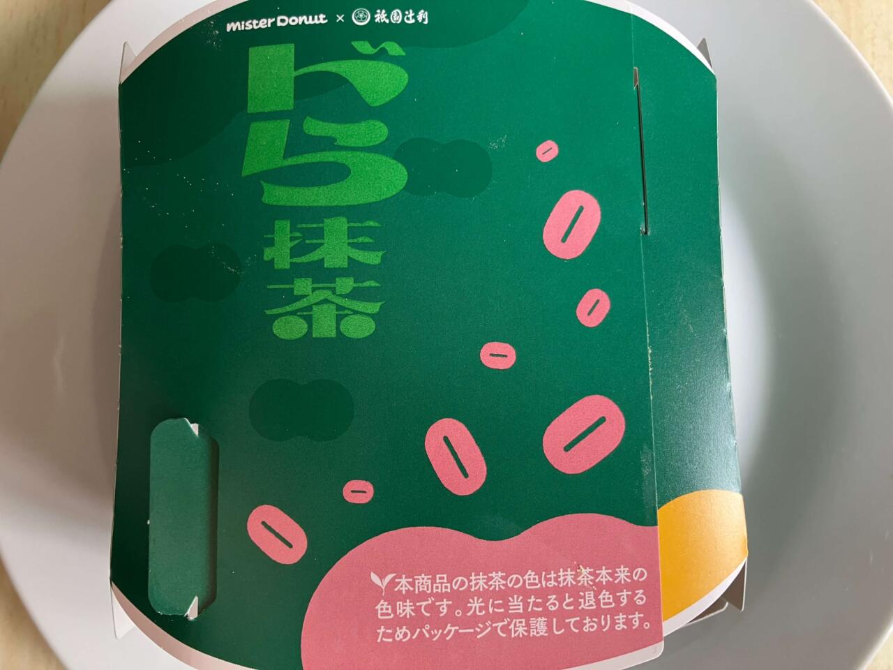 ピンク色が「ドら抹茶 つぶあん華ホイップ」のパッケージ。【ミスタードーナツ春の新作】