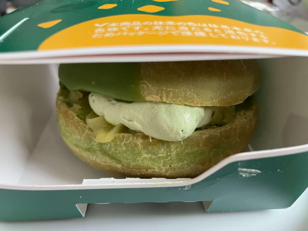 今回のミスドの新作抹茶ドーナツ「ドら抹茶」は、中に挟まれた具材の個性を、抹茶生地とクリームが絶妙にまとめあげる、見た目も含め非常にポップで食べやすい仕上がりでした。