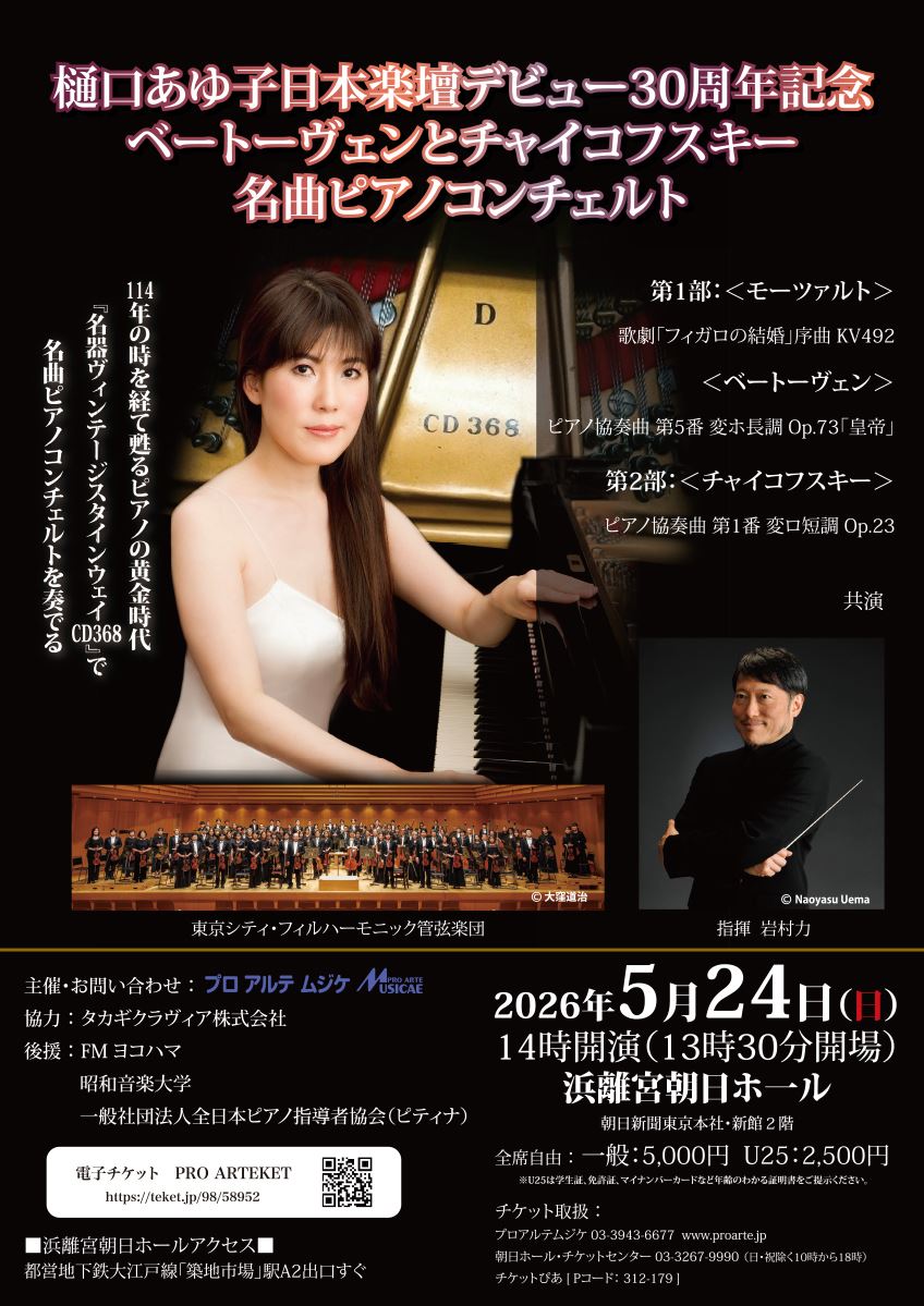 『樋口あゆ子 日本楽壇デビュー30周年記念公演 ベートーヴェンとチャイコフスキー 名曲ピアノコンチェルト』