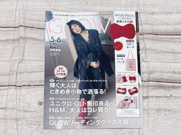 『GLOW』5月・6月合併号増刊の付録「MAISON SPECIAL×ハローキティ リボンポーチ&トートバッグ」は、かわいさと大人っぽさを絶妙なバランスで両立した、満足度の高いセットでした。