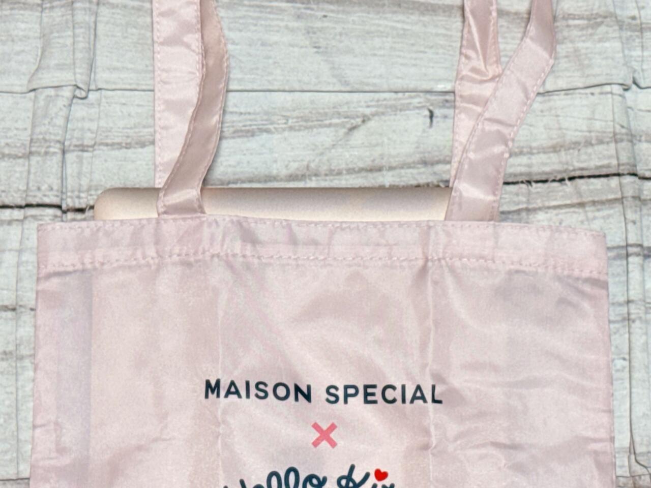フロントには「MAISON SPECIAL×Hello Kitty」のロゴプリント入りで、コラボならではの特別感もたっぷり。キティちゃんロゴのハートやリボン、洋服のレッドがほどよいアクセントになっています。