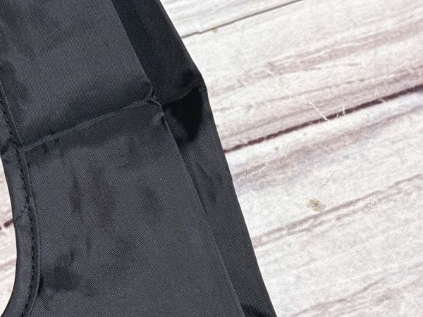 エコバッグ本体はブラックカラー。どんなコーデにも合わせやすく、デイリー使いしやすいのがうれしいポイントです。生地は厚手でしっかりしており、安心感のある作り。