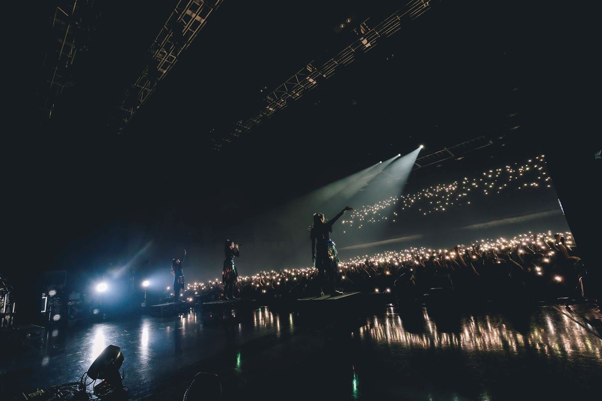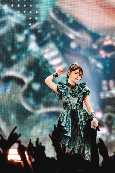 「DEATH! DEATH!」の掛け声と共に疾走するバンドサウンド、続く「from me to u(feat. Poppy)」ではキレキレのパフォーマンスを披露し、レジェンドソングの「ド・キ・ド・キ☆モーニング」も久しぶりに登場した。BABYMETAL史上、最もブルータルな「Song 3 (feat. Slaughter to Prevail)」、アゲアゲの「PA PA YA!!」、バンドソロを挟んで「メタり!!」、と立て続けにヒットソングが披露され、先日のさいたまスーパーアリーナ公演で初披露となった「Algorism」、客席がライトアップされた「Monochrome」などを終え、早くも後半戦に突入した。