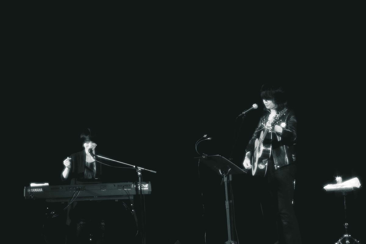 a flood of circle・佐々木亮介が主催の弾き語りツーマンシリーズ『雷よ静かに轟け』の第十二夜が3月25日東京・浅草フランス座演芸場東洋館で開催された。 これまでに中田裕二、NakamuraEmi、奇妙礼太郎、古市コータロー、小山田壮平、詩人・御徒町凧、中村一義(Acoustic set with 三井律郎)、TOSHI-LOW(BRAHMAN, OAU)、橋本絵莉子、山口洋(HEATWAVE)、落語家の春風亭昇羊が出演してきたこのイベント。今回は日食なつこをゲストに迎え、ブルースと歌魂が響き合うステージを繰り広げた。