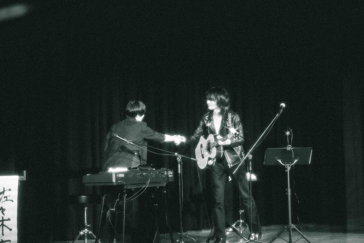 「静かに轟きにやってきました。本日、一撃目の雷でございます」と笑顔で挨拶し、最初のMC。「1991年生まれ、ピアノ弾き語り屋さんです。高校生として、岩手の山奥で鬱々としているときから、佐々木さんたち、a flood of circleさんたちは、雑誌、ラジオ、テレビなどで活躍していて。それから18年経って、まさか浅草で一緒にやる未来あったんだ? と不思議な気持ちを抱きながら、このステージに乗っています。……そうですね、ロックンローラーだと思います、佐々木さんは。さっき楽屋でお話させてもらったんですけど、ステージに乗ってなくてもライブしてるような方だなと。なんで笑うんですか?(笑)」