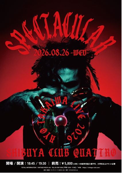 そして、36歳のバースデーを迎える前日8月26日(水)には東京・渋谷CLUB QUATTROでワンマンライブ『RYO TAKAIWA LIVE 2026 - SPECTACULAR –』の開催が決定。同会場でのワンマン公演は2018年以来、約8年振りとなる。