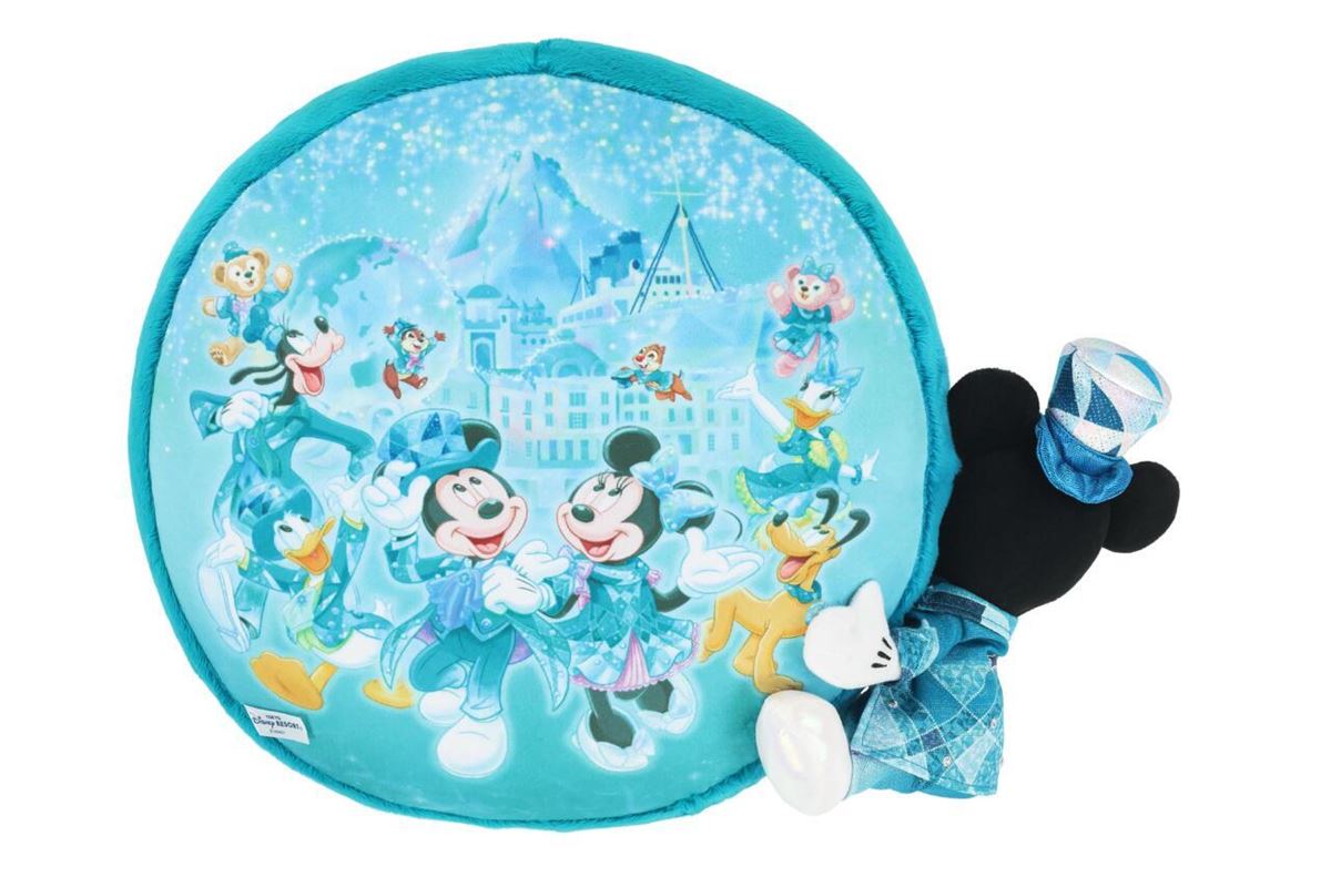 ミッキーが抱きついている丸型クッション。まさかの後ろ側にメインアートのデザイン! これも悩む…。