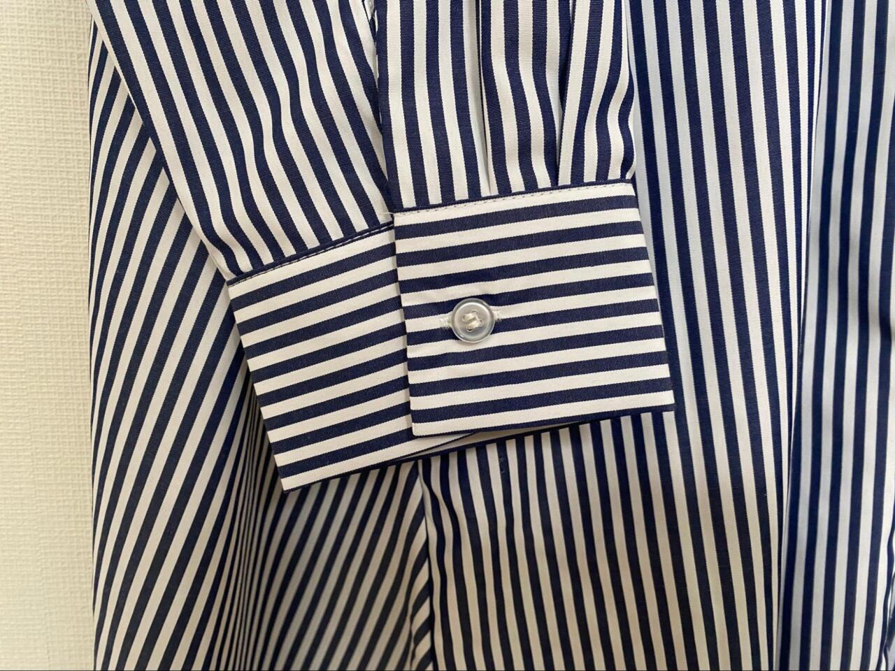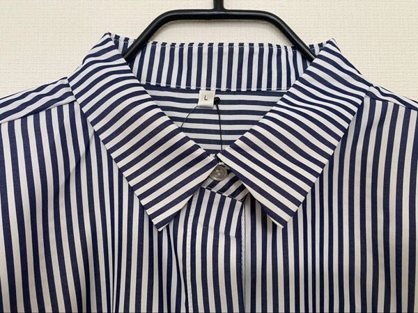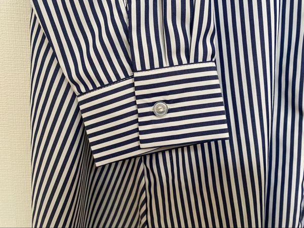襟付きのシャツデザインのため、カジュアルになりすぎず“大人のきれいめ”がかなうのも魅力!シンプルなストライプ柄で、着るだけでサマになるため忙しい朝のコーデにも大助かりです。
