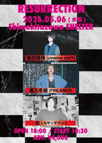 飯田瑞規(cinema staff)、塩入冬湖(FINLANDS)、北(ルサンチマン)が出演!弾き語りイベント『RESURRECTION』下北SHELTERで開催