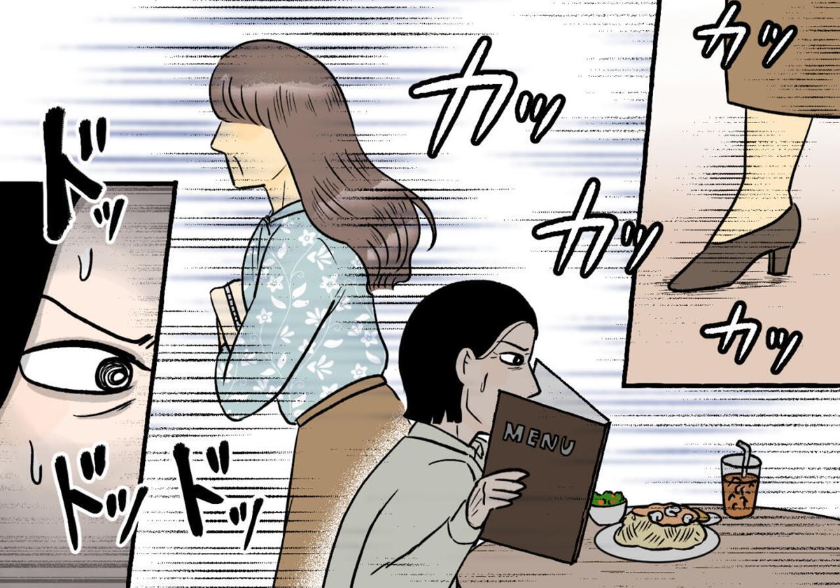 礼子の知らない女性と2人でレストランに入ってきた直也。