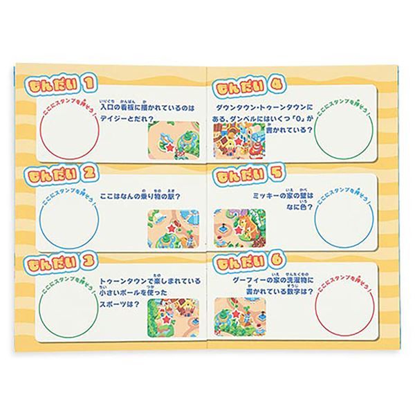 スタンプブックには6つの問題が描かれていて、エリアを実際に巡りながら問題を解いていきます。