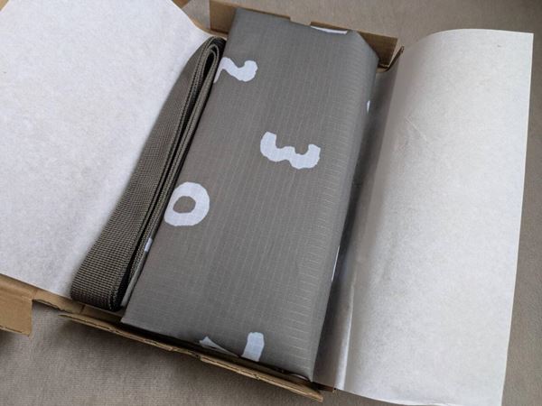 丈夫で軽いリップストップ生地です。くるくる畳んで、ゴムバンドで留めることができるので、いつものバッグに入れてサブバッグとしても持ち歩けます。