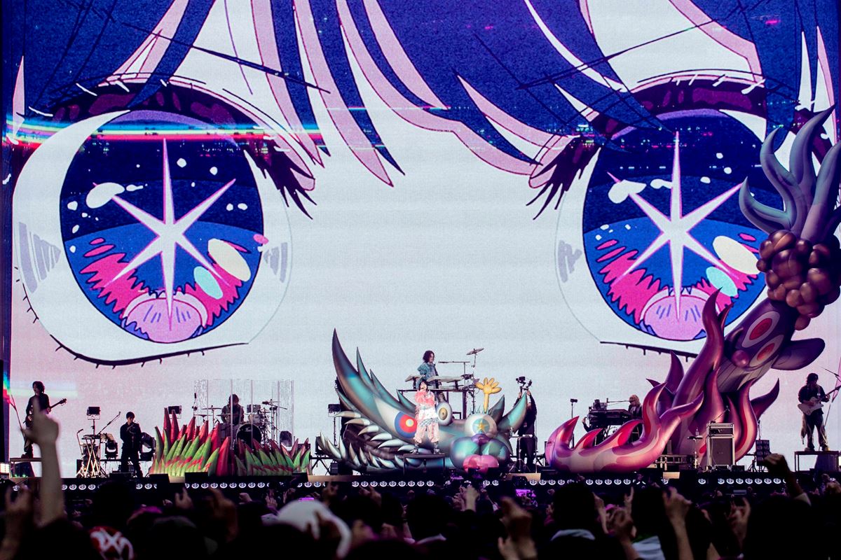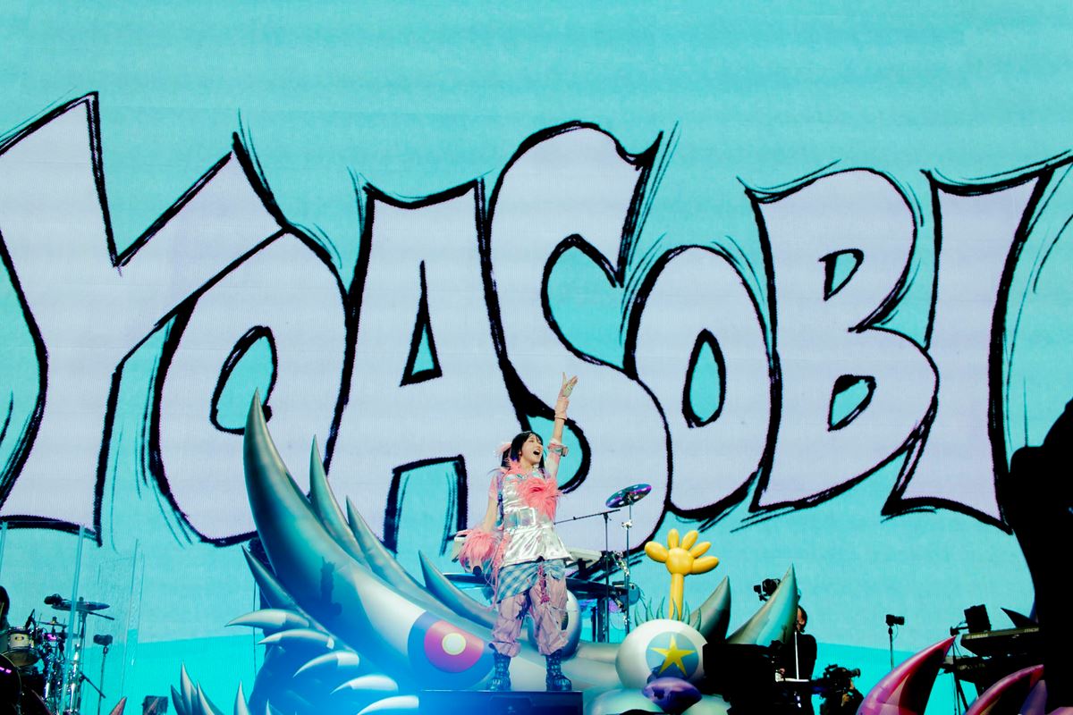 2日目に登場したのはYOASOBI。「アイドル」からステージは始まり、ikuraの放つ圧倒的なカリスマ性はスタジアムを埋め尽くす観衆を飲み込むほどの輝きを放つ。「たぶん」では会場中のスマートフォンのライトが灯り、幻想的な光景が広がる中、ikuraの透明な歌声が響き渡った。「ONE OK ROCKさんへ、最大のリスペクトと愛と感謝を込めて」と語るikura。「群青」での感動的な大合唱を経て、ラストの「夜に駆ける」まで、Ayaseが生み出す緻密なサウンドがスタジアムを鮮やかに彩り続けた。