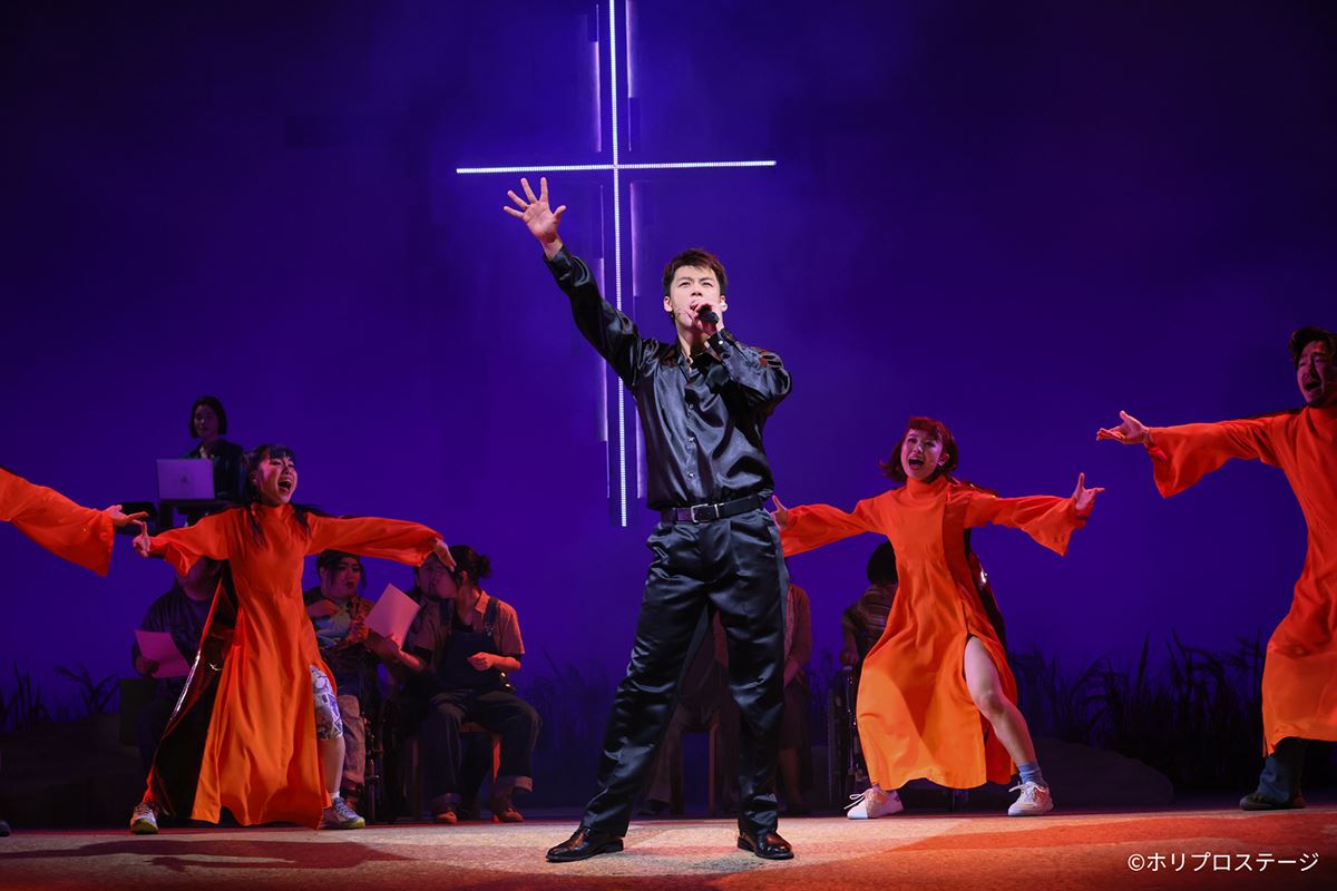 演出のジェニファー・タンは二重盆の美術を自在に使いこなし、心理描写も巧みに取り入れながら物語を展開。淀みなく連なる場面転換が鮮やかで、複数のキャラクターの葛藤や感情が折り重なるように浮かび上がり、楽曲の魅力を一層引き立てている。さらにアレクザンドラ・サルミエントの振付が、楽曲と物語にさらなる熱を吹き込み、作品全体のエネルギーを牽引。ゴスペル隊の弾けるような躍動、町の人々の狂乱をダイナミックに描き出し、その高揚感を客席へと力強く届ける。