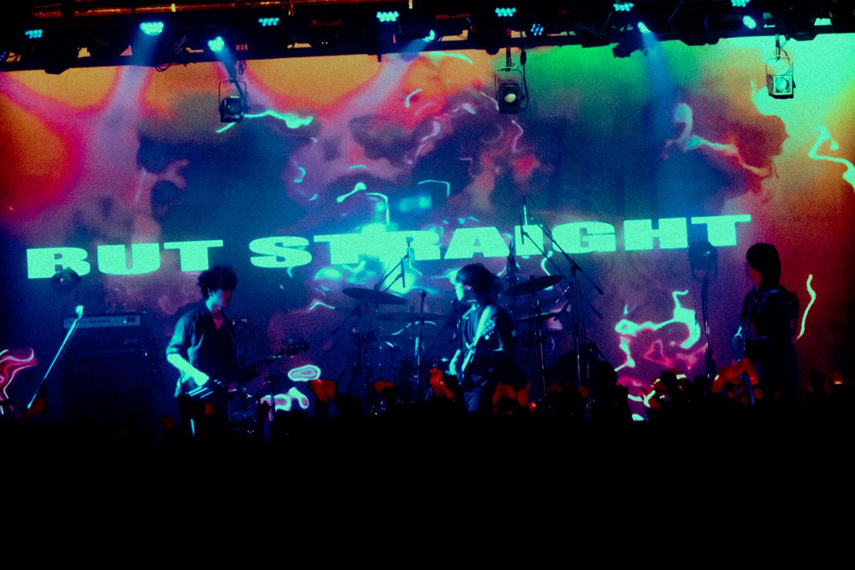 さらに「俗生活の行方」、そして気合一発のキメとともに「BUT STRAIGHT」へ。どの曲でもVJによって歌詞が映し出され、楽曲の世界をさらに押し広げてみせる。その「BUT STRAIGHT」を終えて、北は思わず「マジかっこいいな」とこぼしていた。