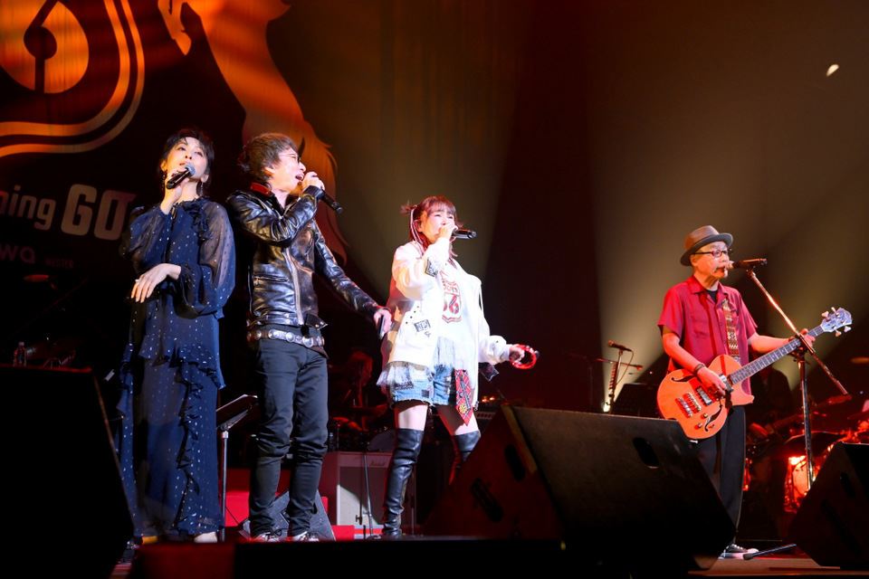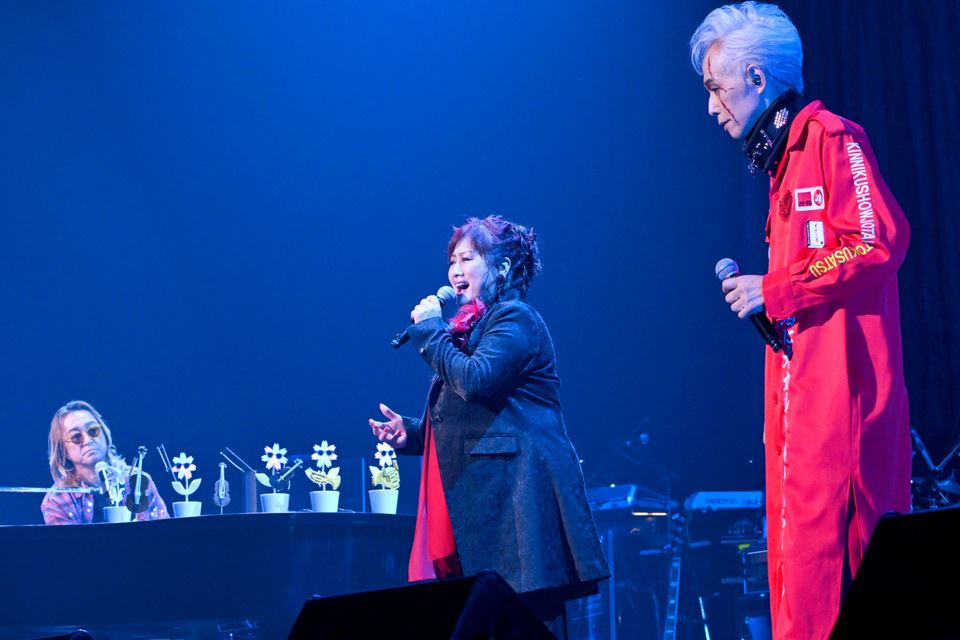 吉井和哉(THE YELLOW MONKEY)と田島貴男による「Space Oddity」、ABEDON(UNICORN)、渡辺美里、大槻ケンジによる「アルカセ」など、豪華な組み合わせはまだまだ続く。そんなコラボで特筆すべきは数あるけれど、ことのほか満喫していたのが吉井和哉だろう。例えば八熊真一を紹介するときには「『SPARK』という曲は彼のバンド名から刺激を受けてつけました!」と告白したり、早見優、大槻ケンジとともに「夏色のナンシー」を歌うときには、10代の頃からの大ファンでプロデューサーにコラボを志願したことを明かしたり。歌いながら隣に並んだ早見優を指さし、「本物!」と叫ぶその目は、少年のようにキラキラしていた。