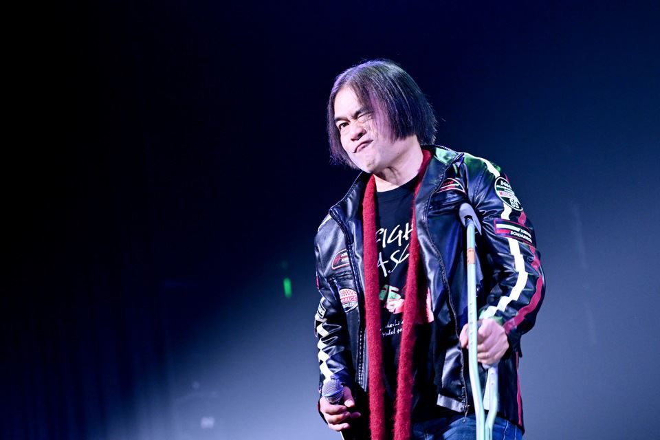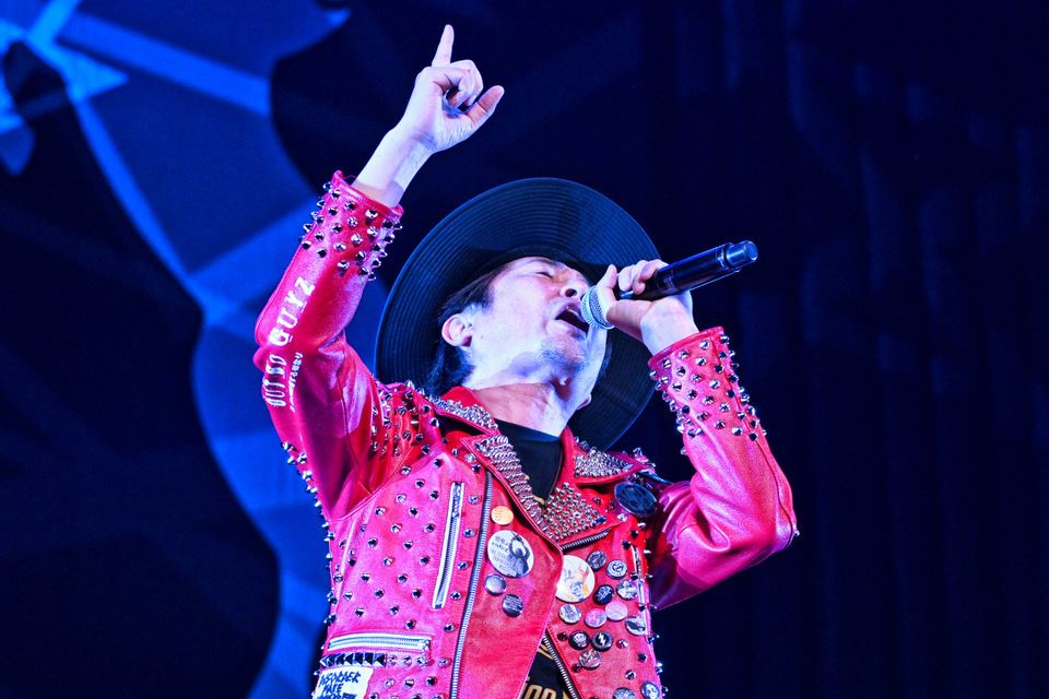 ライブはオープニングの「太陽にほえろ」のテーマに続き、真っ赤な革ジャンを身に纏った宮田和弥(JUN SKY WALKER(S))が登場。第一声で観客のテンションを爆上がりさせる「START」から、赤いツナギでガナリまくる大槻ケンヂ(筋肉少女帯)の「日本印度化計画」など、各シンガーひとりずつが持ち曲を歌っていった。ここでは全曲を記したい衝動を抑えて紹介していくが、近年のSNSリールでリバイバルヒットした田島貴男(Original Love)の「接吻 kiss」、今やテレビで誰かが流儀を語るときの必須ナンバーとなったスガシカオの「Progress」など、イントロが鳴るだけで足元が揺れるような大歓声が沸き上がる。同年代の中でアイドルから女優への転身を最も華麗に実現した斉藤由貴、1990年代前後の音楽シーンを席巻したガールズポップの一人者・永井真理子の登場も、客席の男女問わず絶大な歓迎を受けた。特に、女性アーティストたちの当時と変わらない透明感には驚かされる。キラキラしたスパンコールのボディコンを着こなす早見優と、ツインだんごヘアにニーハイブーツが似合いすぎる永井真理子……なんかもう、崇高で拝みたくなるレベル。