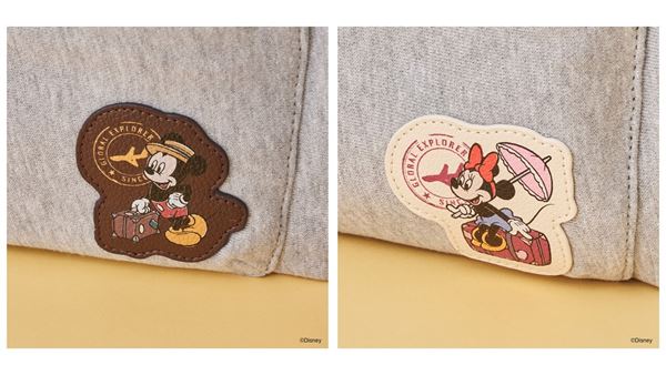 フロントのワッペンには、ミッキーとミニーが仲良く旅行を楽しんでいる様子。