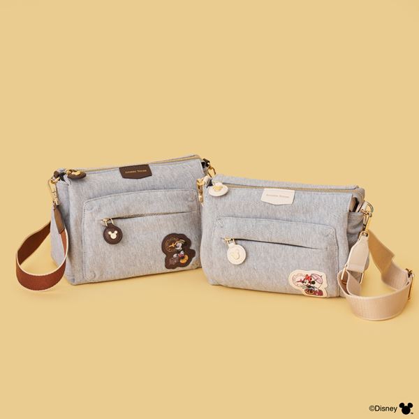 ミッキーとミニーの2色展開で、フロントのワッペンやショルダーベルトのカラーが異なるデザインになっています。