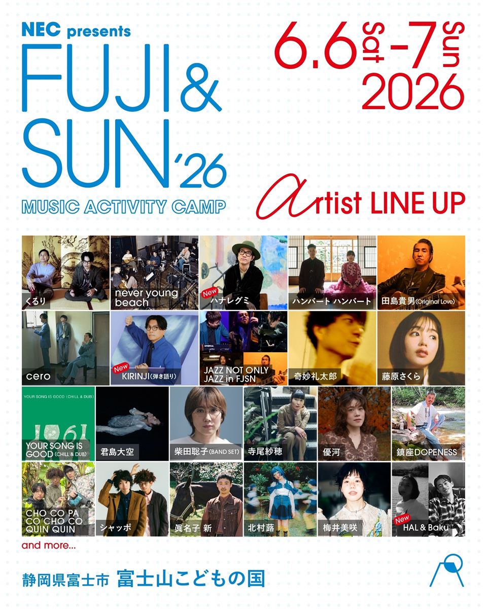 キャンプインフェスティバル『NEC presents FUJI & SUN’26』が追加ラインナップを発表した。
