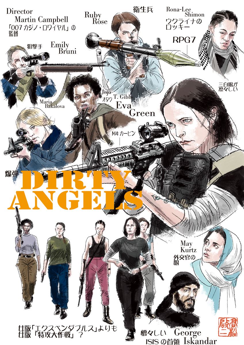 女版『エクスペンダブルズ』のようだが、マーティン・キャンベル監督は60年代を思わせる特攻アクション映画に仕上げている。主演のエヴァ・グリーンは心にキズを持つジェイク役をただならぬ殺気を漂わせて演じており、これが本作の重みとなっている。彼女の部下の女性傭兵達は、おたがいを“爆弾”や“狙撃手”など任務で呼び合うのが懐かしくもクールだ。一方、仇となるISISの首領アミールは徹底的に極悪非道に描かれている。