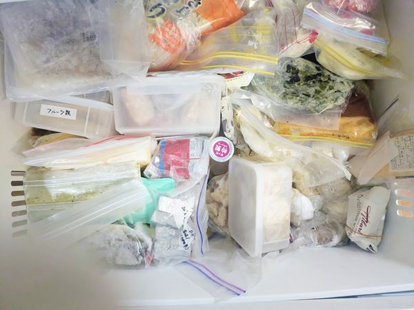 整理整頓が大の苦手な筆者は、冷凍庫にとりあえず食材を詰め込み続けた結果、何がどこにあるかまったくわからない状態に。引き出しの開閉すらままならず、アイスの箱すら入る余地がないほどパンパンでした。