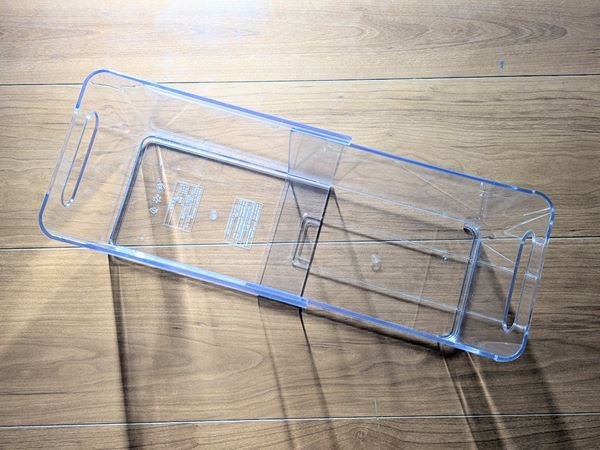 【ニトリ 伸縮できる野菜・冷凍庫トレー(ワイド) 】取っ手の穴があり、出し入れしやすいのも嬉しいポイント◎