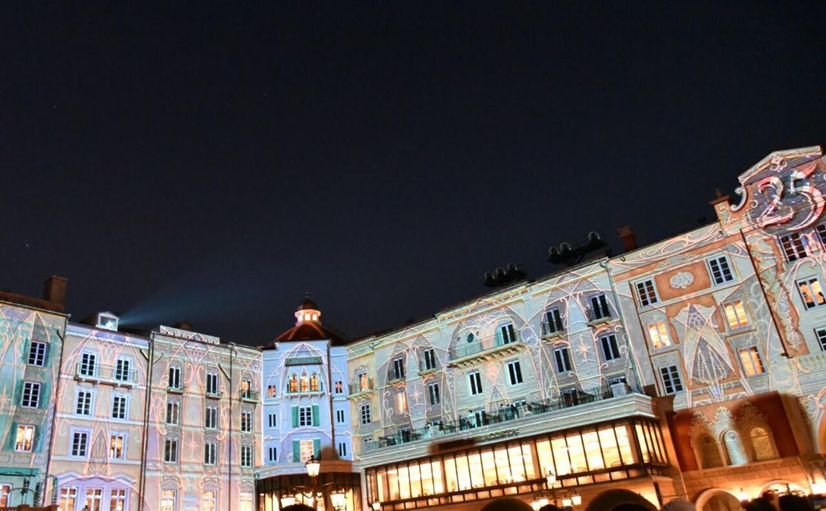 25周年のテーマソングにのせて、東京ディズニーシー・ホテルミラコスタの壁面にキラキラ映像が映し出されます。