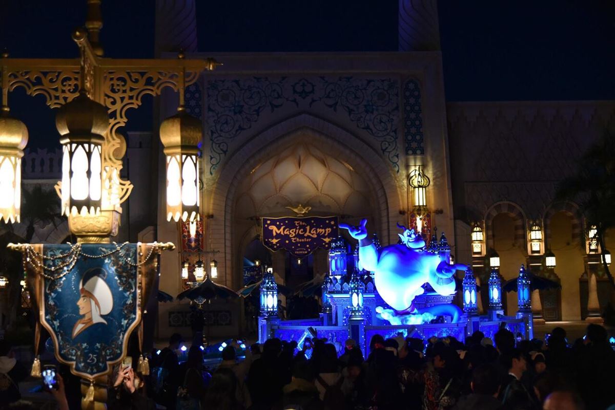 また、アラビアンコーストの中央広場も大きなジーニーがキラキラのジュビリーブルーにライトアップされています。