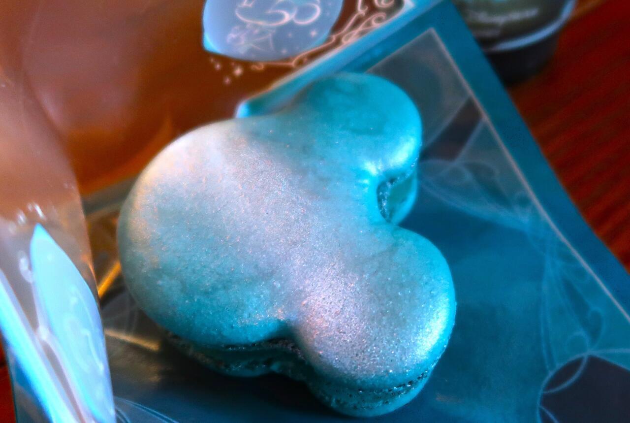 ミッキーマカロン(ホワイトチョコ)、レモネード(ブルーシロップ&バタフライピー © Disney