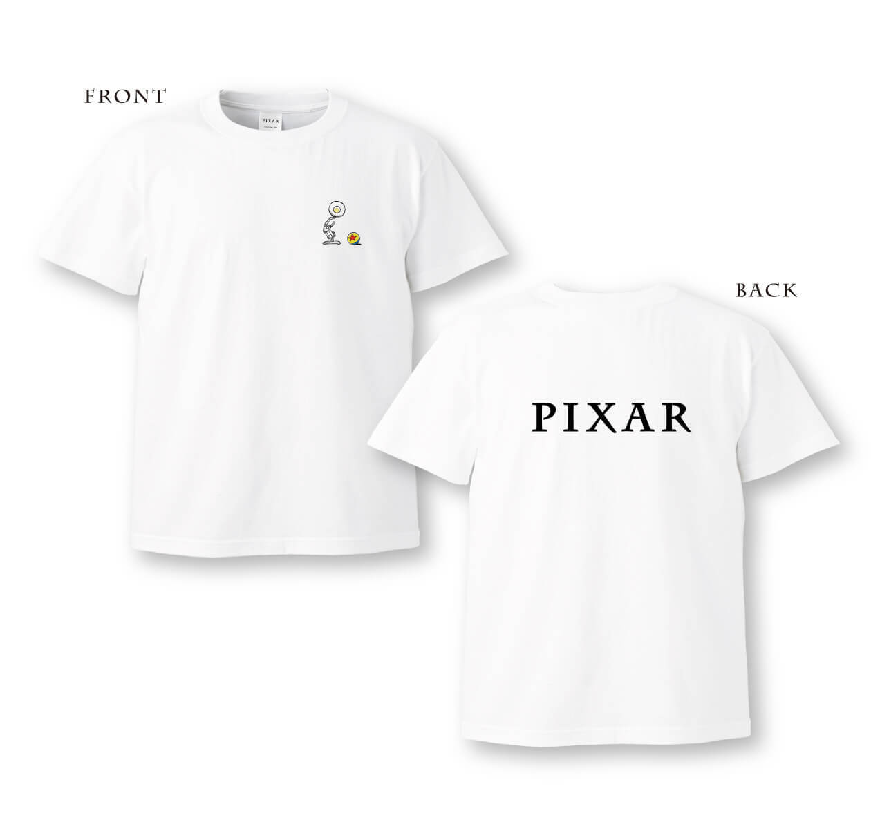 PIXARロゴをバックプリントし、フロントにはピクサーボールをワンポイントでプリントした、おしゃれなデザインです。