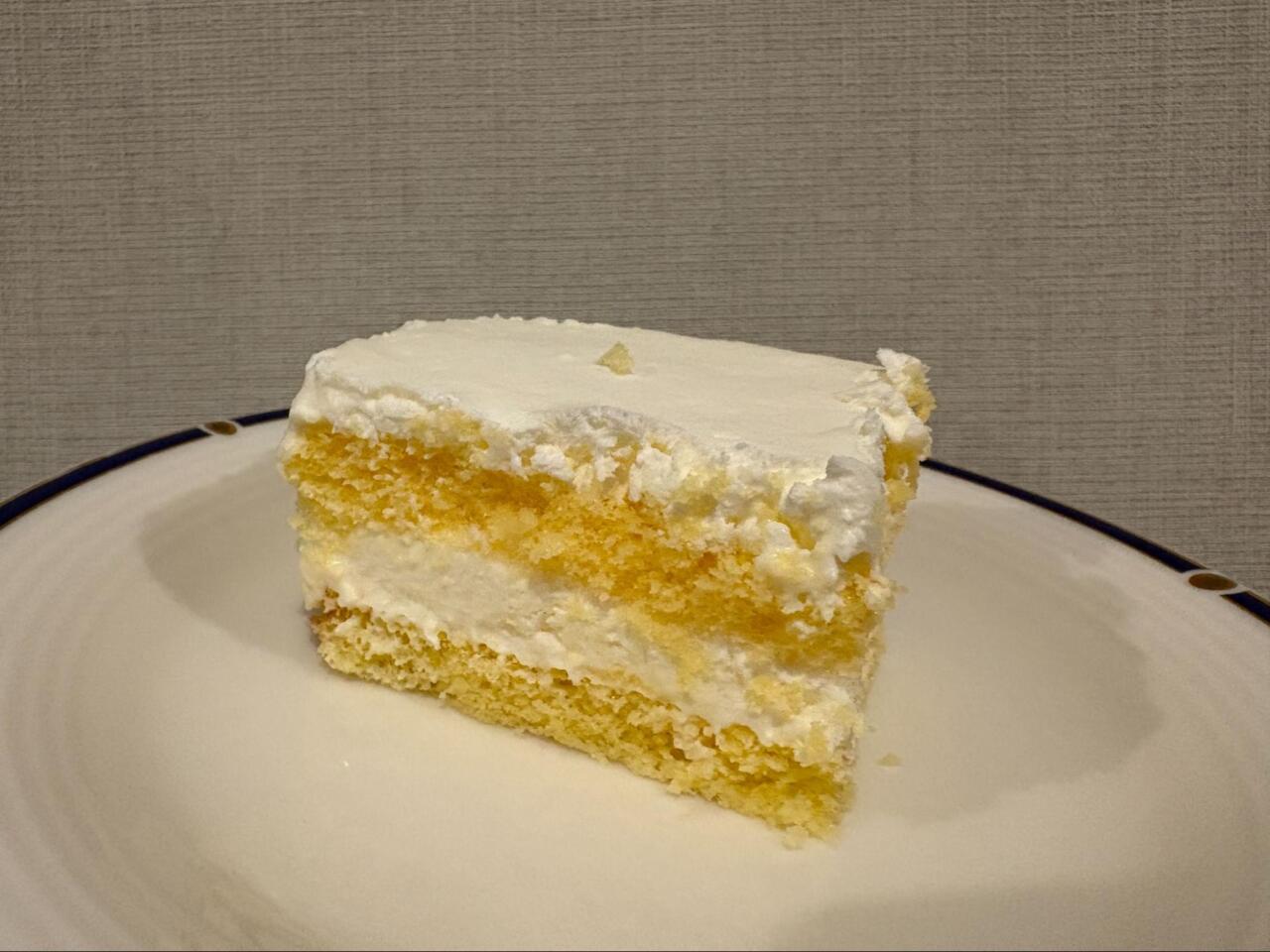 スポンジとクリームが4層に重なり、見た目にも美しく、シンプルながら満足感のあるケーキになっています。
