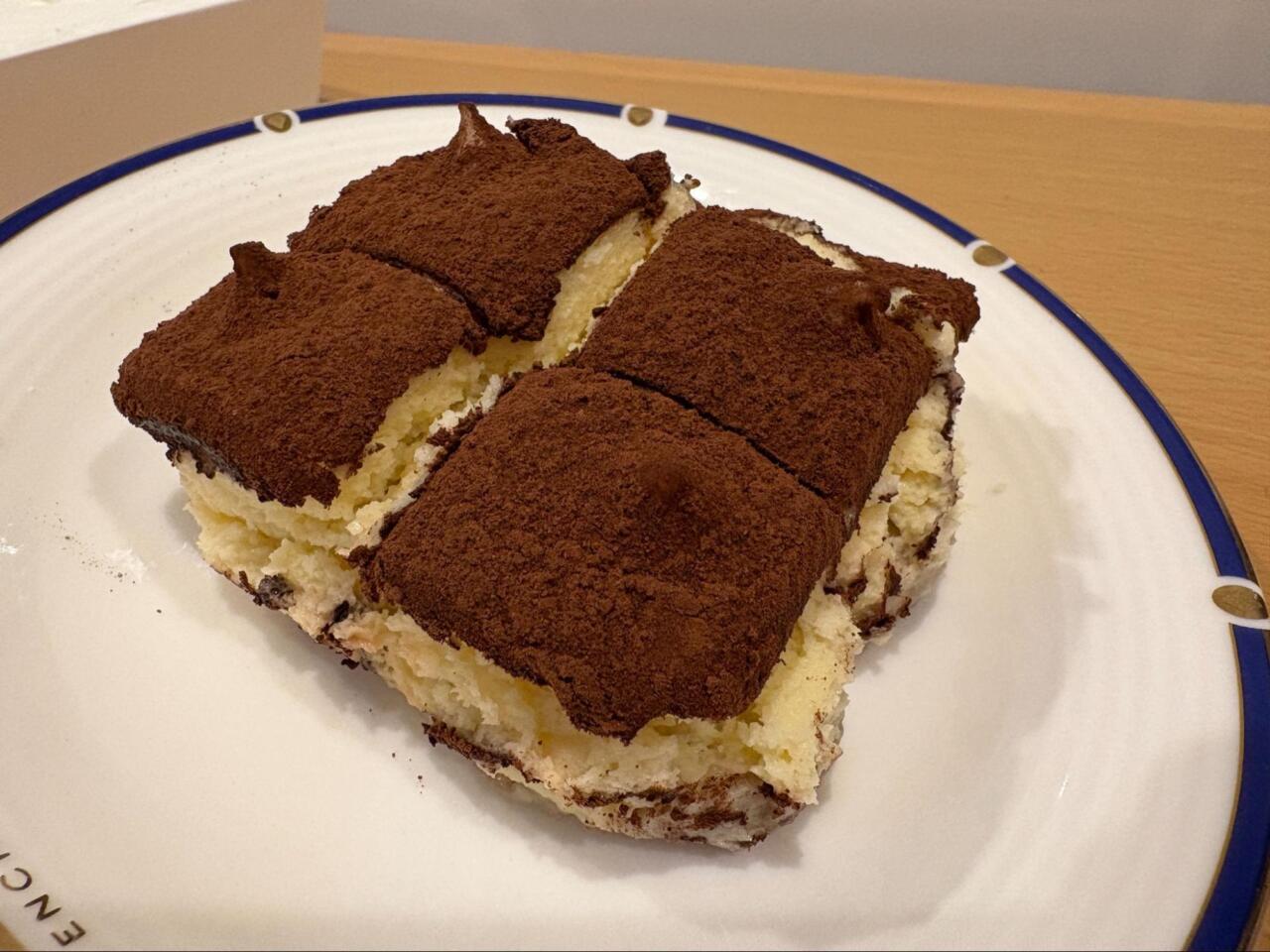 ココアパウダーは苦味控えめで食べやすく、スポンジと合わせると本格的なティラミス感があり、贅沢さを味わえます。