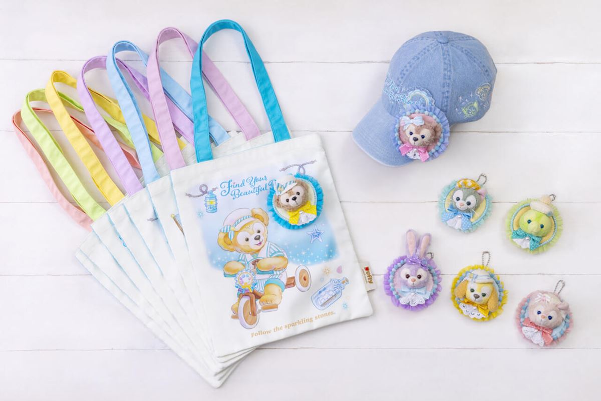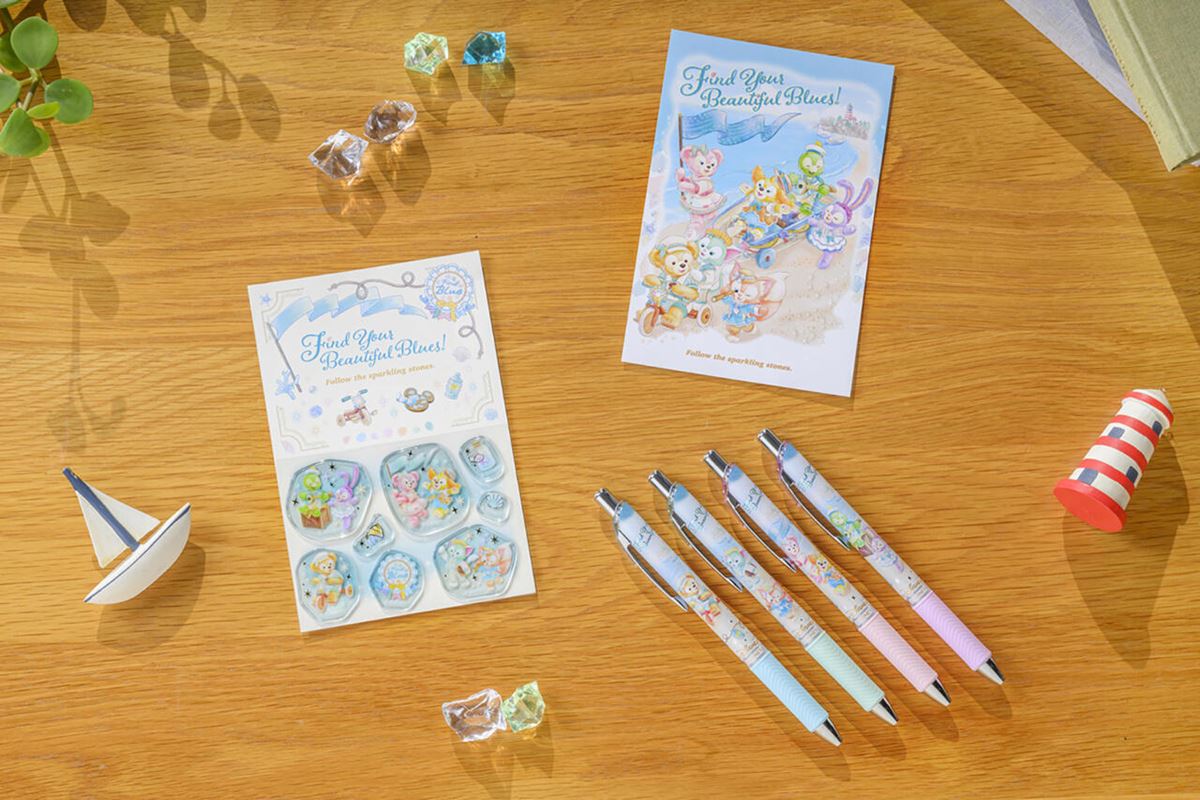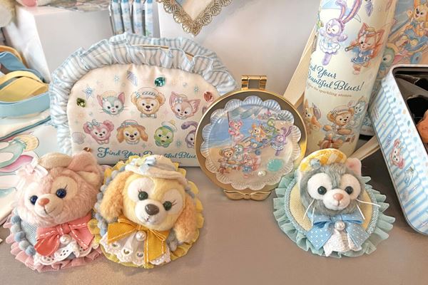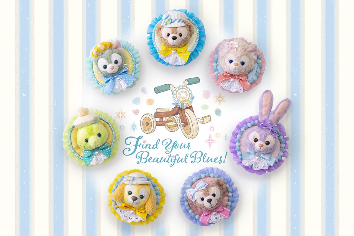 お出かけにぴったりなグッズや、ストーリーに登場するきらきら光る飾りがモチーフのクリップを身につけて、私たちも、ダッフィーたちと一緒にパークで青色をさがしに行きたい!