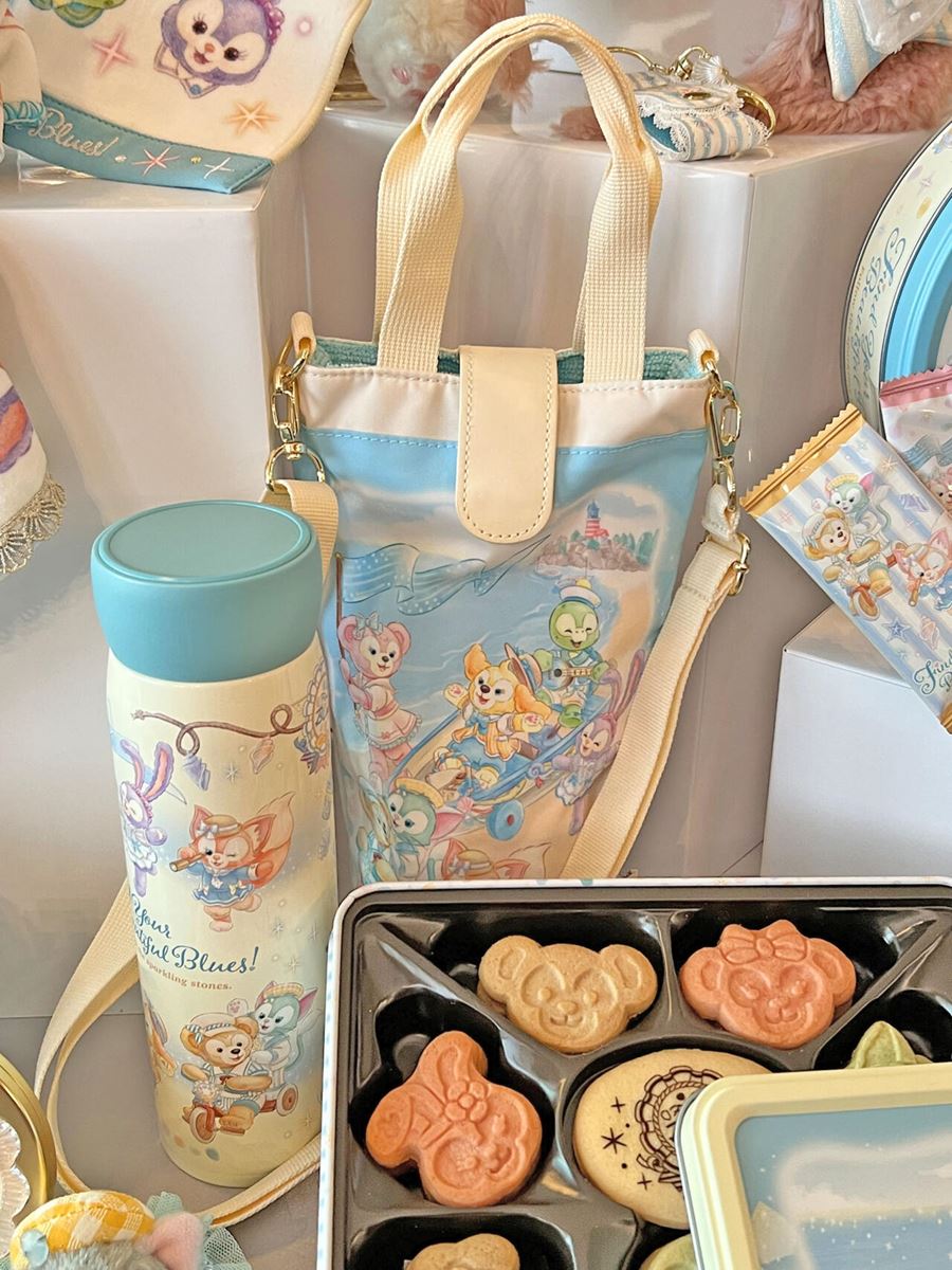 きらめくジュビリーブルーが基調で、中にはいくつかミッキーたちと一緒にダッフィーとシェリーメイの2人が登場するグッズもあります。
