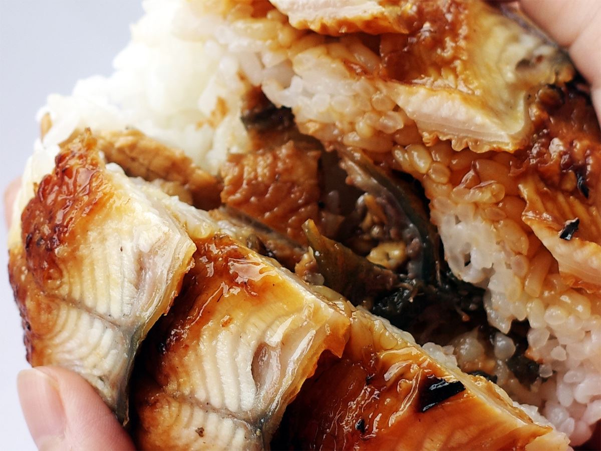 さらにヤバいのが、使われているうなぎの量。おにぎりの外にはうなぎ蒲焼きが上に3枚。さらに中には刻んだうなぎ蒲焼きがたっぷり入っているとのこと。贅沢すぎる!