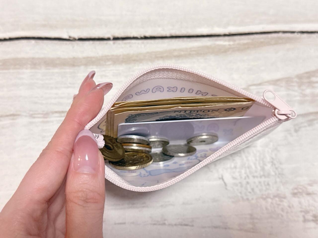 また、少し前にSNSで話題になった「100均財布界隈」の方にも朗報なアイテム。二つ折りにした紙幣やカードが入るサイズ感なので、ミニ財布として使うのもおすすめです。