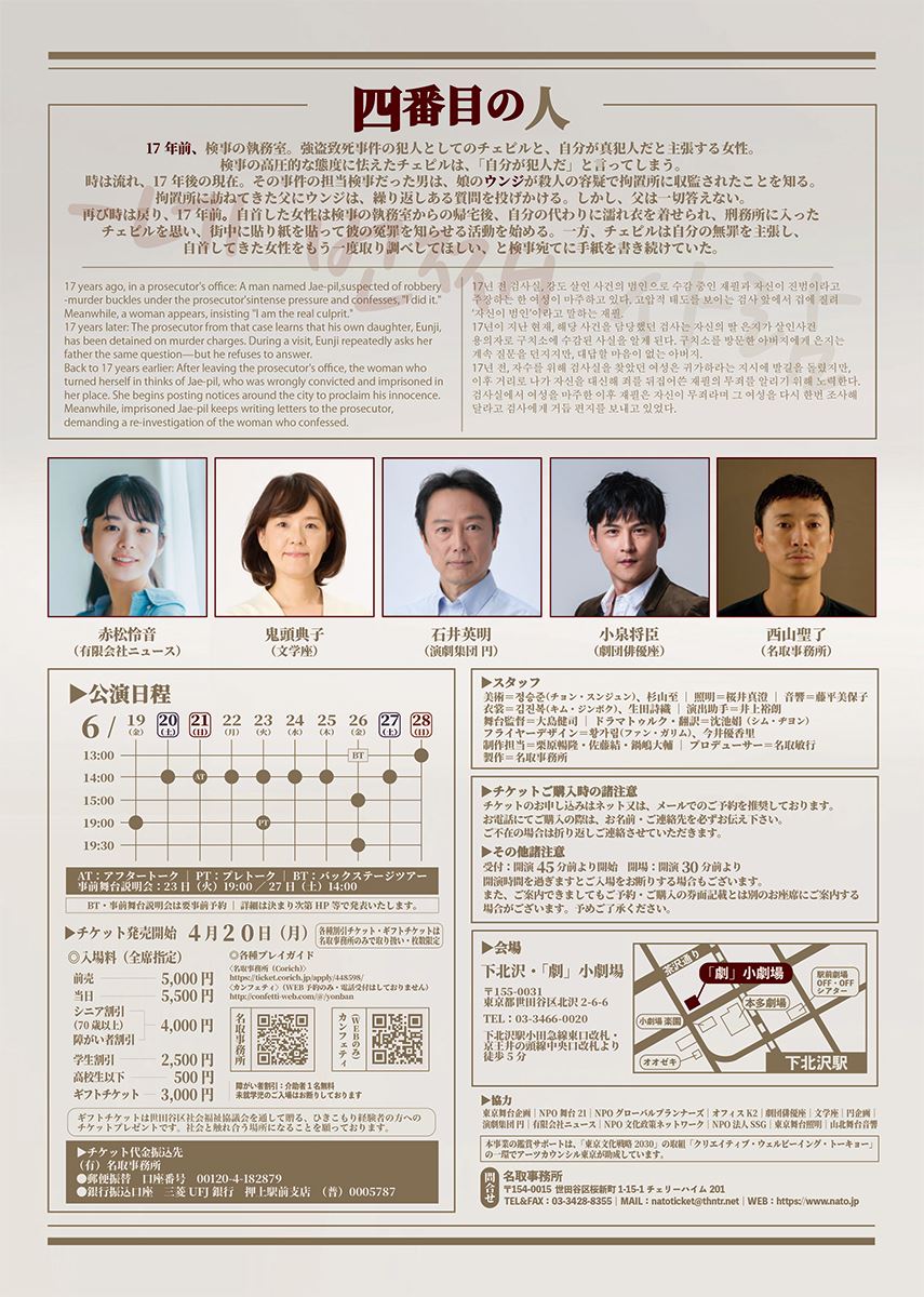 現代韓国演劇シリーズ第8弾 “冤罪”描く『四番目の人』本邦初演を生田みゆき演出で