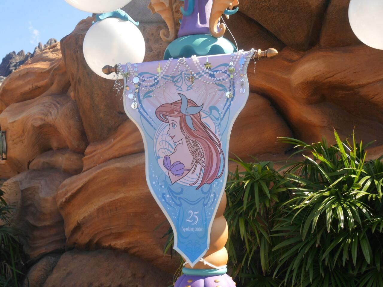 マーメイドラグーンには、ジュビリーブルーで彩られた『リトル・マーメイド』のキャラクターのバナーが登場。