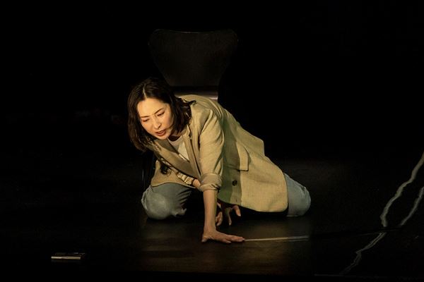 やがて語りに影が差し、冒頭の軽快さからは想像もつかない展開を迎える。そこでも自らを鼓舞するように、努めてドライに語る<わたし>。観ている側も平常心で受け止めようとするが、そうもいかず。そのとき、<わたし>と自分の心の距離が、ぐっと近づいていることに気づく。また、「チャット」と「シーン」は互いに侵食し合うようにシームレスとなり、その頃には客席の明かりがついても、非常口誘導灯はもう灯らない。