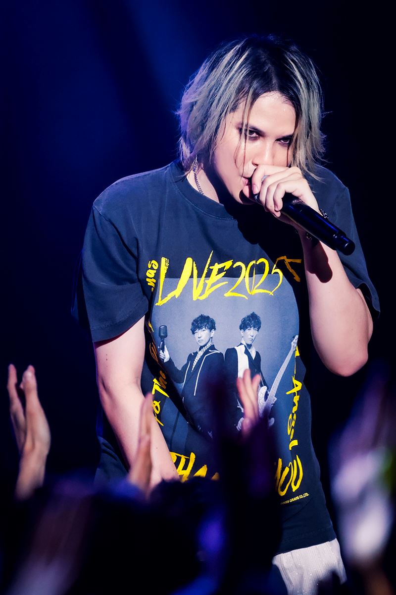 今回の誕生祭は,タイトルから様子が違っていた。いつもの“THANK YOU”に、2025年1月、東京ドームで開催したL’Arc-en-Ciel初のバースデーライヴ<L’Arc-en-Ciel LIVE 2025 hyde BIRTHDAY CELEBRATION-hyde誕生祭->との繋がりを感じさせるようなサブタイトル「TETSUYA BIRTHDAY CELEBRATION」を付け加えるという粋な計らいで、フアンを喜ばせていたTETSUYA 。そのタイトルの繋がりに引き寄せられるように、当日TETSUYA は東京で、HYDEは大阪 関西万博で、それぞれがスペシャルなライヴを開催することになった。