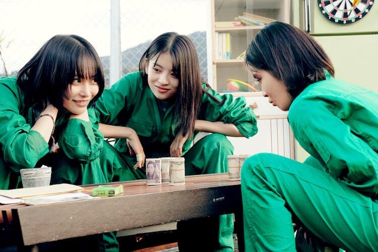 映画「万事快調〈オール・グリーンズ〉」より、左から南沙良演じる朴秀美、出口夏希演じる矢口美流紅、吉田美月喜演じる岩隈真子。劇中では彼女たちが、禁断の課外活動を始めるさまが描かれる