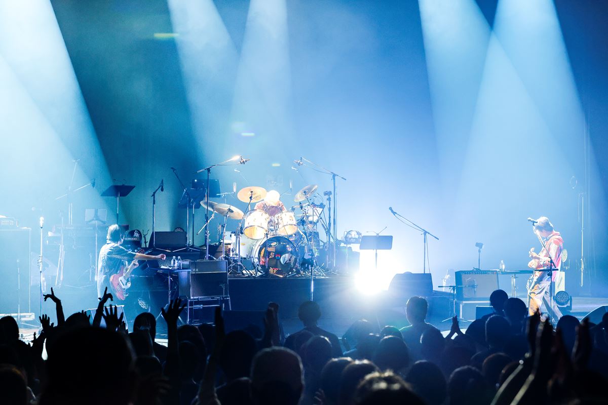 「どか~ん」を経て、「真心にはめずらしく、みなさん大いに歌っていただきたい曲をお届けします!」と桜井が叫んで「新しい夜明け」へ。そして、「ENDLESS SUMMER NUDE」「愛」「拝啓、ジョン・レノン」と、まさにこの編成で聴きたい曲の連打でピークを迎え、本編が終了する。ラストの「拝啓、ジョン・レノン」は、「CDよりイントロ倍でお届けします!」(桜井)という特別バージョンだった。