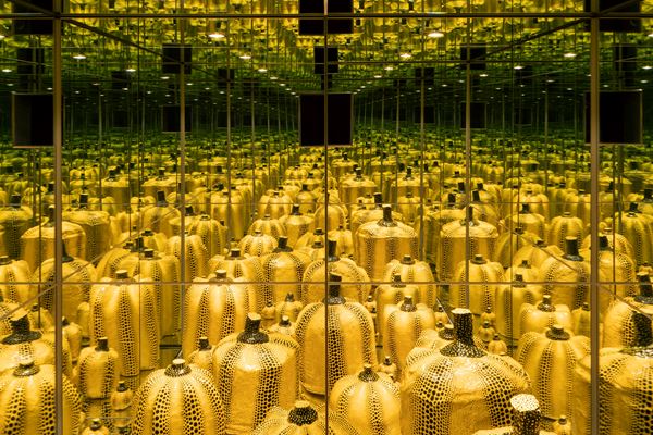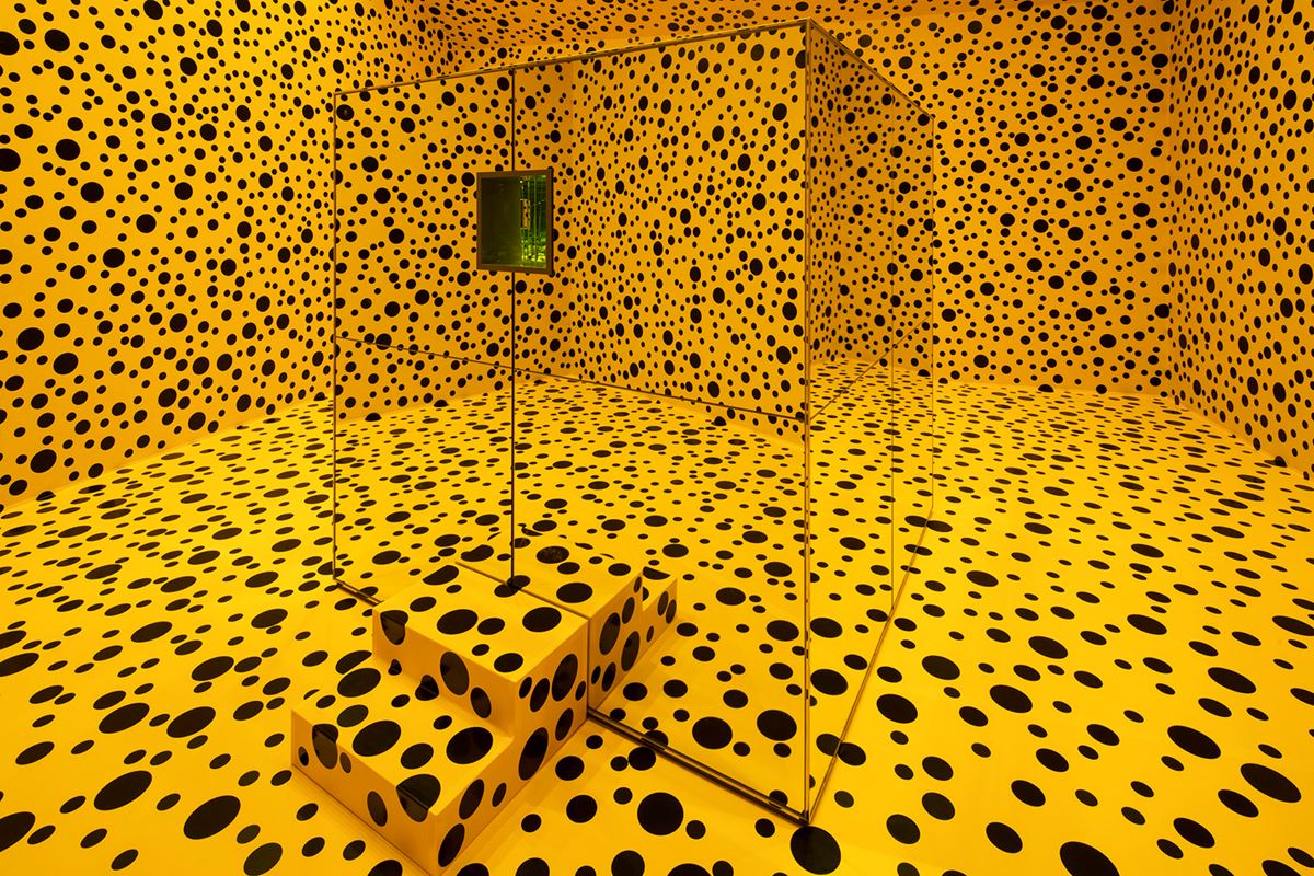 その空間に足を踏み入れ、作品を目にして息をのみ、「ワォッ!」と声をあげた。集まった世界のアート関係者が驚いた瞬間だった。全体が黄色に黒の水玉で覆い尽くされた部屋、中央に置かれた鏡張りの四角い立体のミラールームの中をのぞくと、無限に広がり増殖する南瓜。インスタレーションは大反響を巻き起こした。