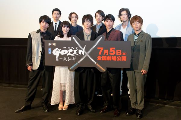 映画と舞台を完全連動させる新プロジェクト“東映ムビ×ステ”の第1弾として制作された映画『GOZEN-純恋の剣-』。今作の完成披露舞台挨拶に、犬飼貴丈、優希美青、武田航平、前山剛久、井澤勇貴、松本寛也、井俣太良、元木聖也、矢崎広らが登壇した。