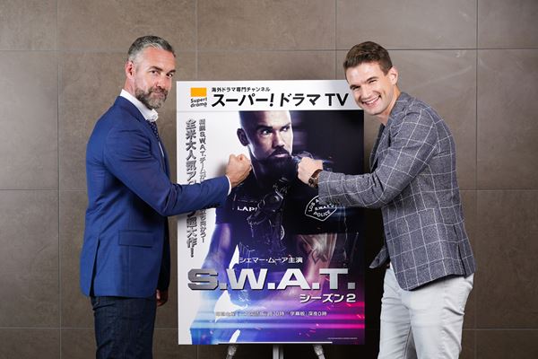 ロサンゼルスを舞台に、ロサンゼルス市警の特殊武装戦術部隊S.W.A.T.が凶悪事件に立ち向かう姿を描くテレビシリーズ『S.W.A.T.』。緊迫感ある銃撃戦や臨場感あふれるカーチェイスなど、映画並みの迫力あるアクションシーンが注目を集め、日本でも人気の海外ドラマだ。最新シーズン『S.W.A.T. シーズン2』の独占日本初放送を前に、チームメンバーのディーコン役のジェイ・ハリントンと、ストリート役のアレックス・ラッセルが来日。ふたりに最新シーズンの見どころから撮影の舞台裏など直撃インタビューした。