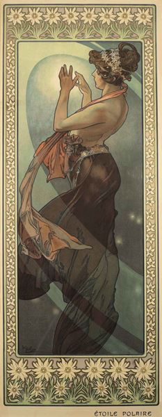 チェコに生まれ、世紀末のパリでサラ・ベルナール主演の舞台ポスターを手がけて名声を得ると、グラフィック・デザイナーとしてさまざまな商品ポスターや装飾パネルを手がけたミュシャ。エレガントな女性の姿に花などの装飾モティーフを組み合わせ、流麗な曲線や円などの構図を多用。「ミュシャ様式」と呼ばれる独創的なスタイルを確立していった。