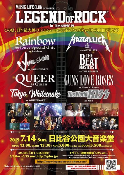 洋楽ロックのレジェンドアーティストのトリビュートバンド8組が出演するライブイベント「LEGEND OF ROCK in 日比谷野音’19」が7月14日、東京・日比谷野外音楽堂にて開催される。