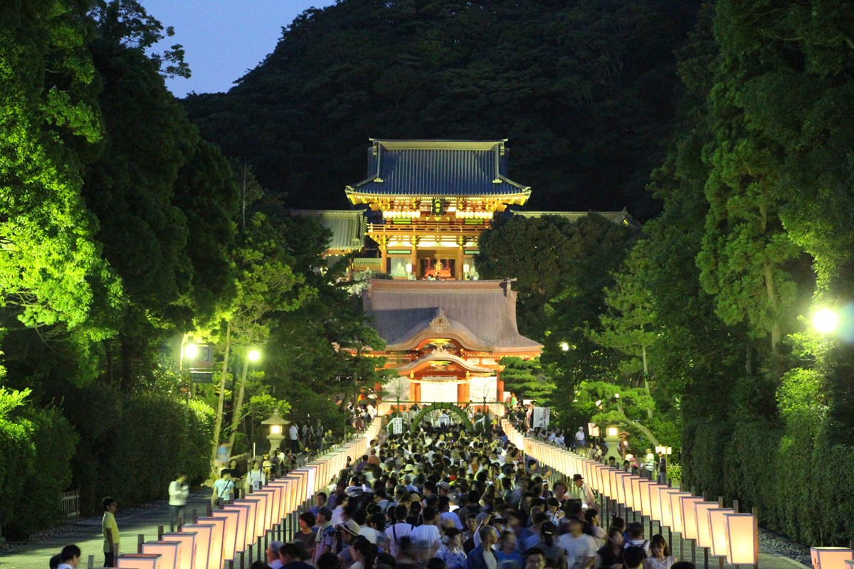 鎌倉の夏の名物『ぼんぼり祭』が鶴岡八幡宮で開催される。鎌倉にゆかりのある文化人をはじめ、各界の著名人が揮毫した書画約400点が、ぼんぼりに仕立てられ、参道、流鏑馬馬場、舞殿周りに並ぶ。夕刻になるとぼんぼりに灯りが点され、夜まで賑わう。